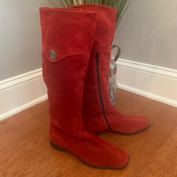hogl Shoes | Hogl Tall Zipper Red Flat red flat boots