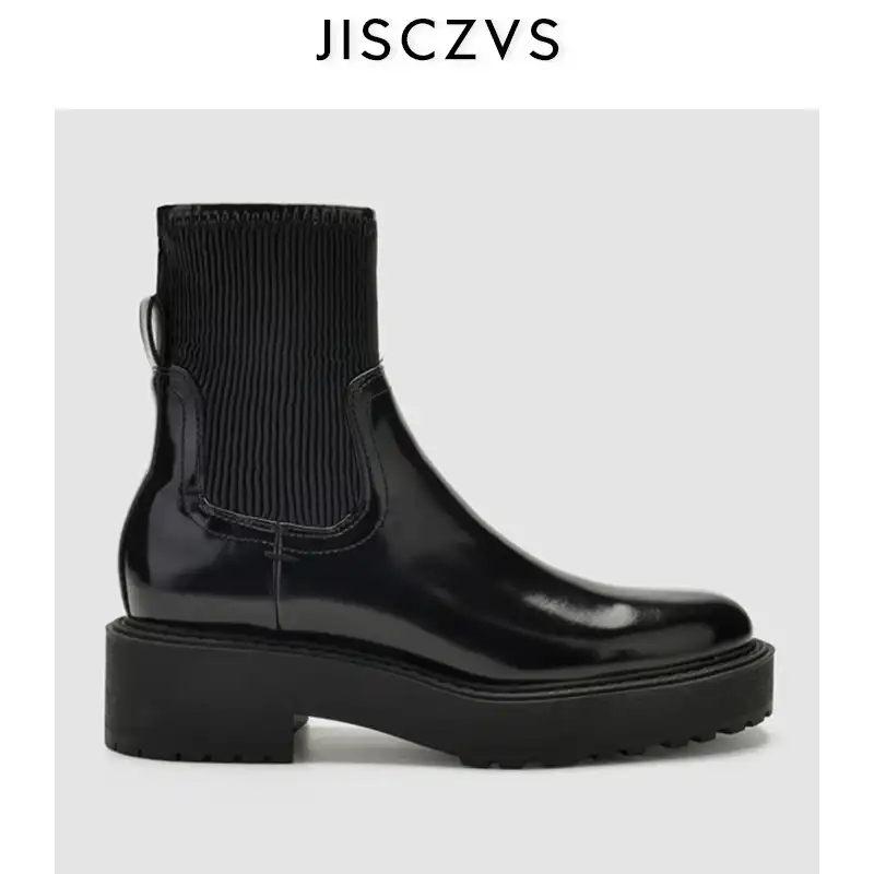 Women Chunky Heel Platform Boots Patent patent leather sock booties