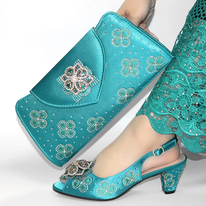 Low heel sandal shoes and clutches bag teal low heel shoes