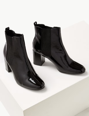 Leather Patent Block Heel Chelsea Ankle black patent boots marks spencer