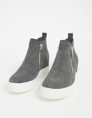 Steve Madden Wedge zip sneakers in grey steve madden high top wedge sneakers